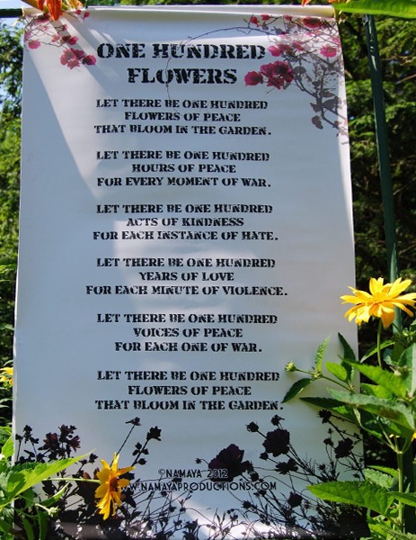 100 Flowers of Peace is available as an outdoor multimedia display 100 Flowers Of Peace Video with Music.